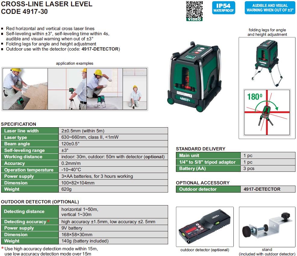 INSIZE 4917-30 křížový laser IP54 s přesností měření 0,2mm/m