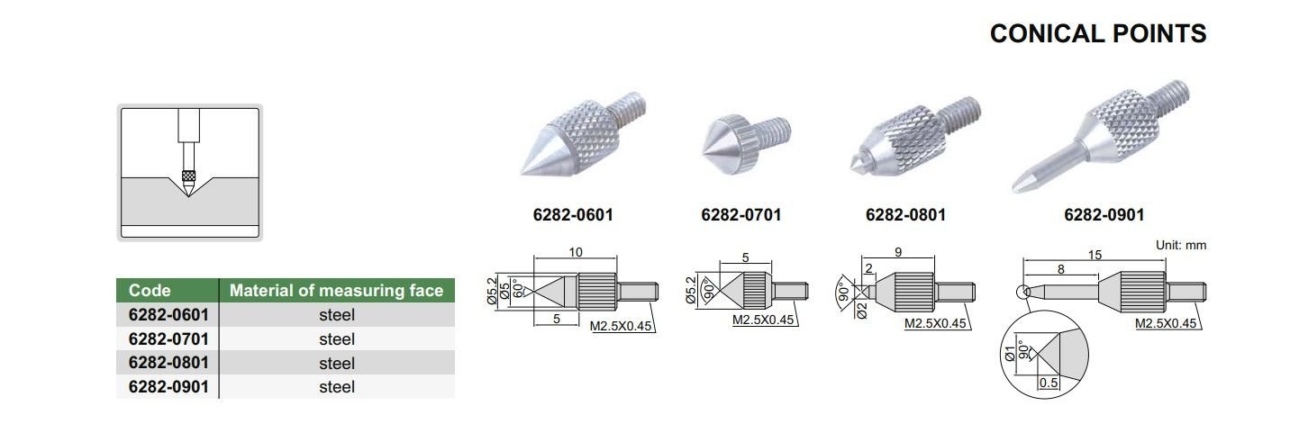 INSIZE 6282-0601 měřící dotek pro úchylkoměry kuželový