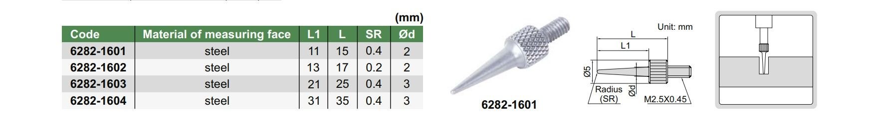 INSIZE 6282-1602 měřící dotek pro úchylkoměry jehlový L=17mm