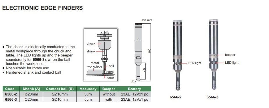INSIZE 6566-3 Elektronický najížděcí trn - sonda 20 mm + \"bzučák\"