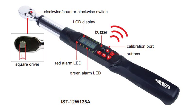 INSIZE IST-12W340A Digitální momentový klíč s BLUETOOTH 68-340 Nm
