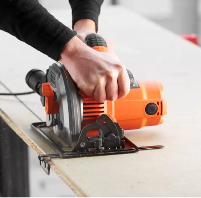 Univerzální okružní pila Black & Decker CS1550K s výkonem 1500 W jednoduše a precizně zvládne řezy až do hloubky 66 mm. Vyvážený design v kombinaci s měkčenou rukojetí umožňuje pohodlnou práci a snadné vedení pily. Rychlé a přesné nastavení hloubky řezu pomocí rychloupínací páčky. Univerzální použití na všechny řezné práce díky možnosti nastavení úhlů v rozmezí 90° do 45°. Jednoduchá výměna kotouče je zajištěna integrovanou aretací vřetena. Součástí pily je adaptér pro pohodlné a efektivní odsávání prachu. Dodávány v plastovém kufru..