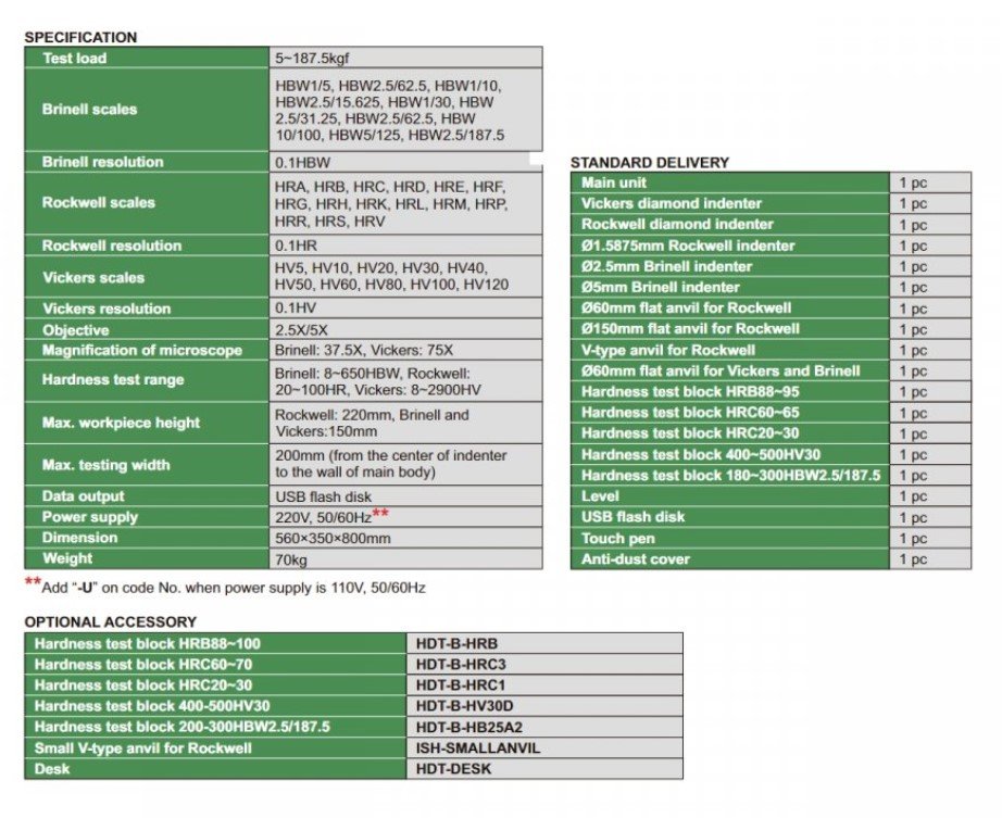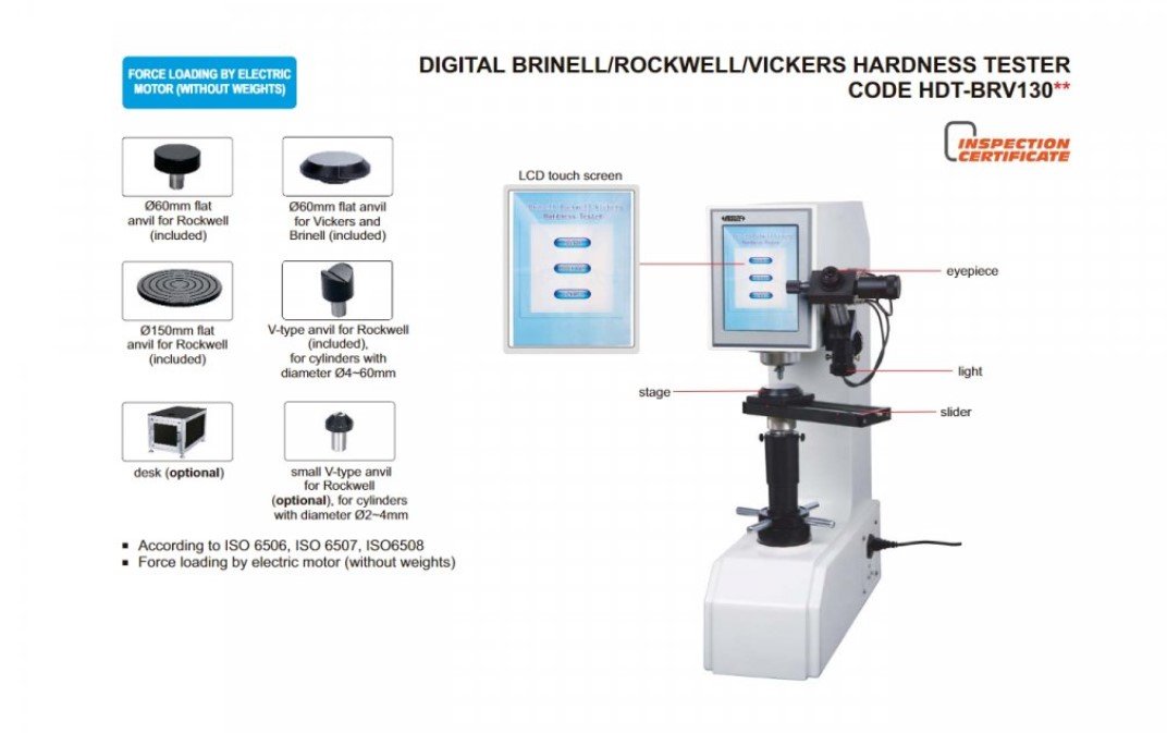 Metoda měření tvrdosti ve stupnicích Brinell, Rockwell a Vickers. Výstup dat přes USB.