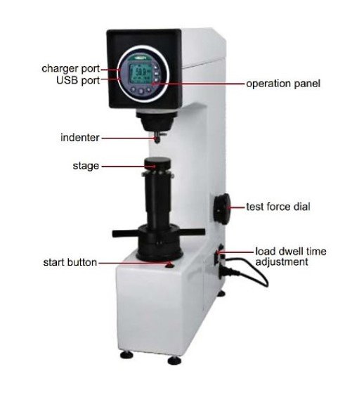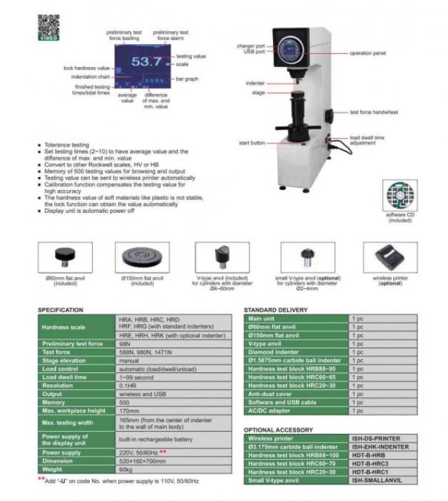Automatický digitální tvrdoměr Rockwell s automatickým spouštěním zátěže ISH-MRD200 od INSIZE s testovací silou až 1471 N (150 kg).