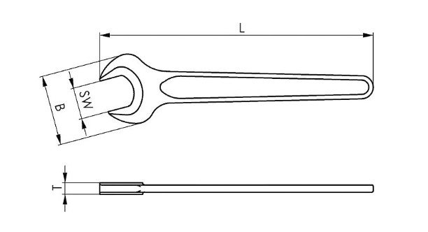 Jednostranný otevřený klíč z kvalitní speciální oceli. Čelisti jsou přesně opracované, se sklonem 15°. Klíč je kalený a fosfátovaný pro vyšší odolnost a dlouhou životnost.