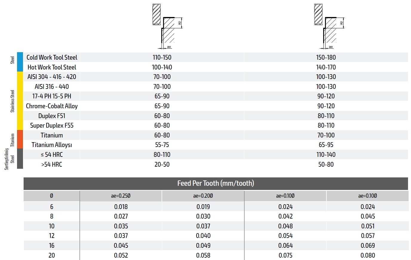 | Druh obráběného materiálu | Nerez, Ocel, Tvrdé materiály |