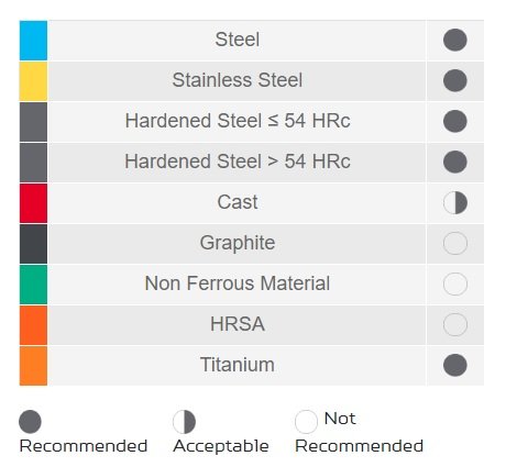 | Druh obráběného materiálu | Litina, Nerez, Ocel, Tvrdé materiály, Žárupevná slitina |