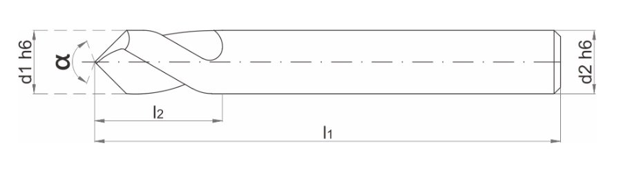 Řezný průměr d1 h6 = 6mm / Upínací průměr d2 h6 = 6mm / Celková délka l1 = 50mm / řezná délka l2 = 16mm