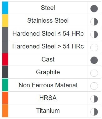 Frézu je možné použít také pro obrábění materiálů jakými jsou např. nerez, HRSA, titan nebo oceli o tvrdosti až 54HRC.