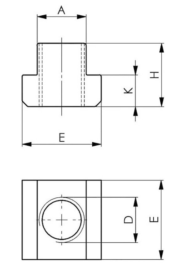 Tento vysoce kvalitní kámen do T-drážek (T-matice) je kalený a odpovídá třídě pevnosti 10, což zajišťuje dlouhou životnost a spolehlivost spojení. Plná nosnost může být dosažena pouze tehdy, pokud je šroubové spojení použito přes celou délku „H“ závitu. Pro doporučenou zkušební sílu viz norma DIN 508.
