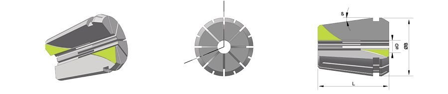 základní třída přesnosti 0,015 mm kleština je vyrobena ze speciální kvalitní pružinové oceli díky jemnému vnitřnímu i vnějšímu broušení garantujeme drsnosti povrchů max. do Rz 2,5 tepelně upraveno na povrchovou tvrdost 47HRC