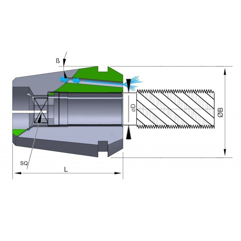 Kleština typ ER32 s vnitřním čtyřhranem a chladícími kanálky pr. 9mm