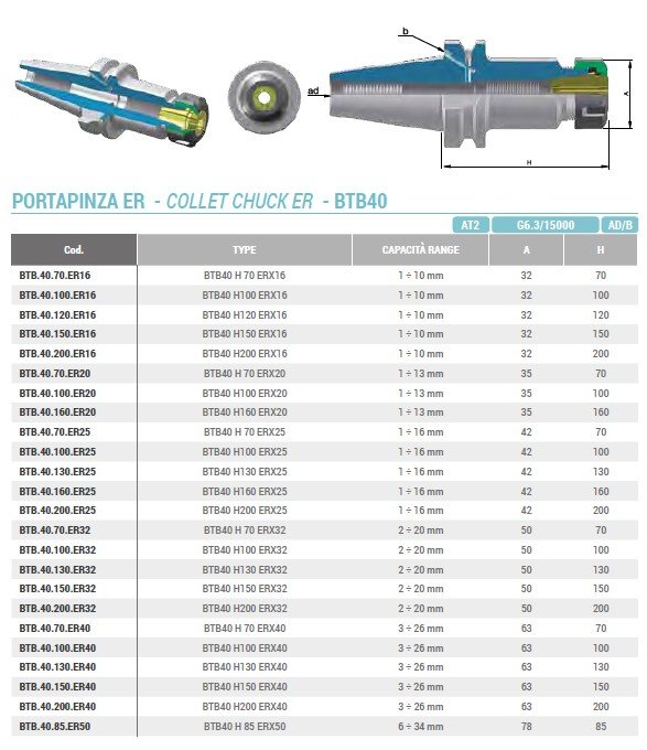 Kleštinový upínač ER BT40 (AD/B) dlouhý H160 ER25