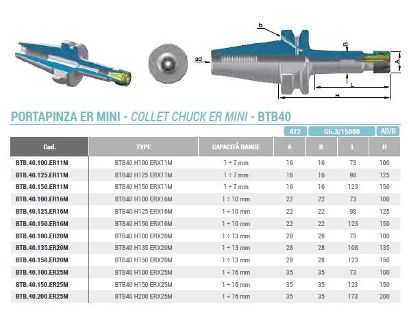 Kleštinový upínač ER MINI BT40 (AD/B) H125 ER11M