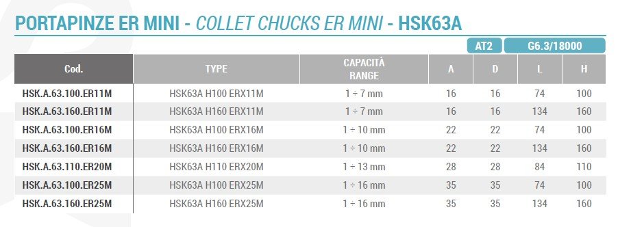 Kleštinový upínač ER MINI HSK63A H160 ER16M