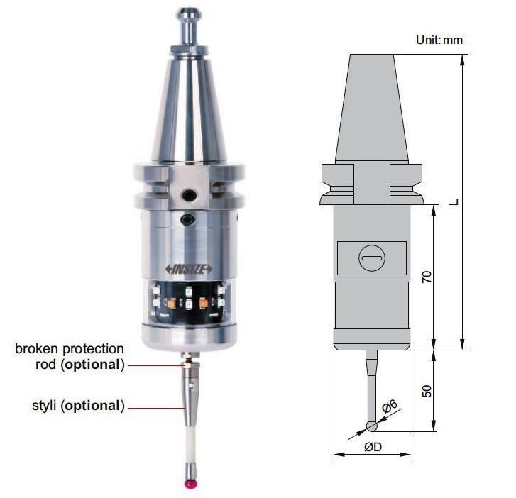 Kompaktní doteková sonda IP68 s optickým přenosem dat INSIZE 9407-1 BT40