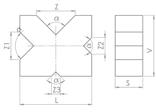 Pro přesné ustavení rotačních součástí. Rýsovací podložky jsou dodávány v párech. Základní rozměry : 70x20x50 mm počet V drážek : 4 Norma: PN 25 5533 Hmotnost: 0,90 kg