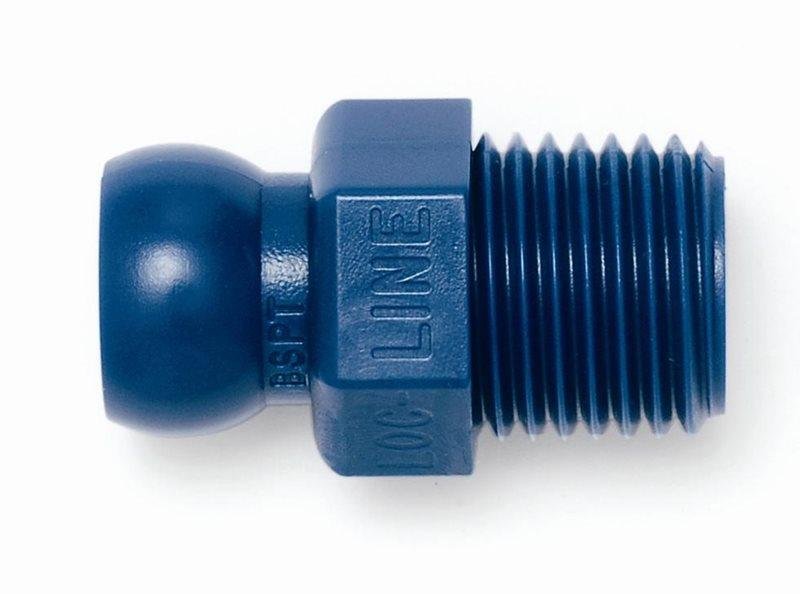1/4" hrdlo se závitem BSPT 1/4" je vyrobeno bez zúžení závitu a je vhodné pro různé aplikace s hadicemi LOC-LINE.
