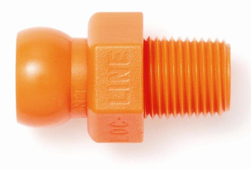 Hrdlo LOC-LINE 1/4" se závitem NPT 1/8" (americký standard, kónický tvar). Provedení v oranžové barvě.
