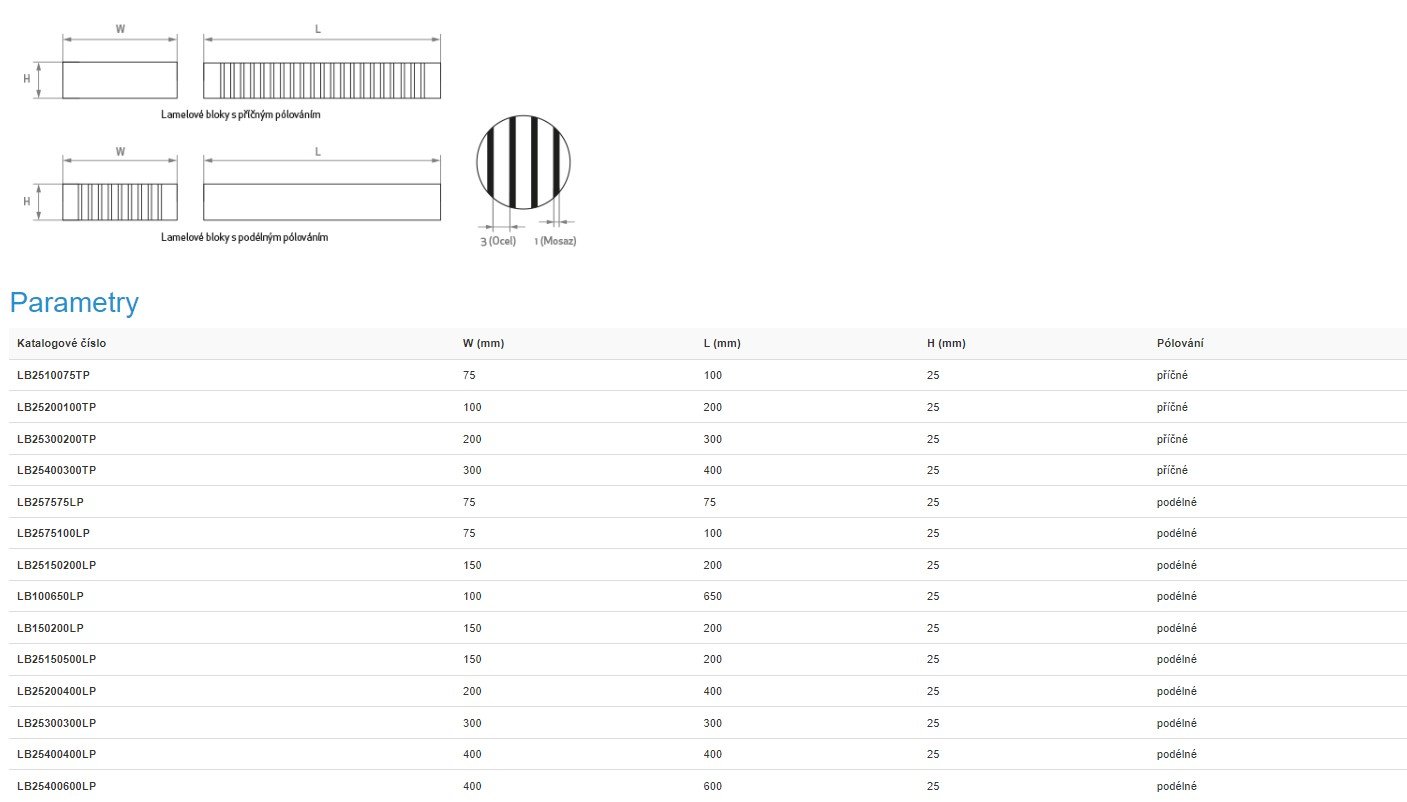 Stříbrem pájené lamelové bloky dodáváme jak pro kruhové, tak i obdélníkové upínače. Usazeny mohou být volně či mechanicky pomocí šroubů nebo kolíků.
