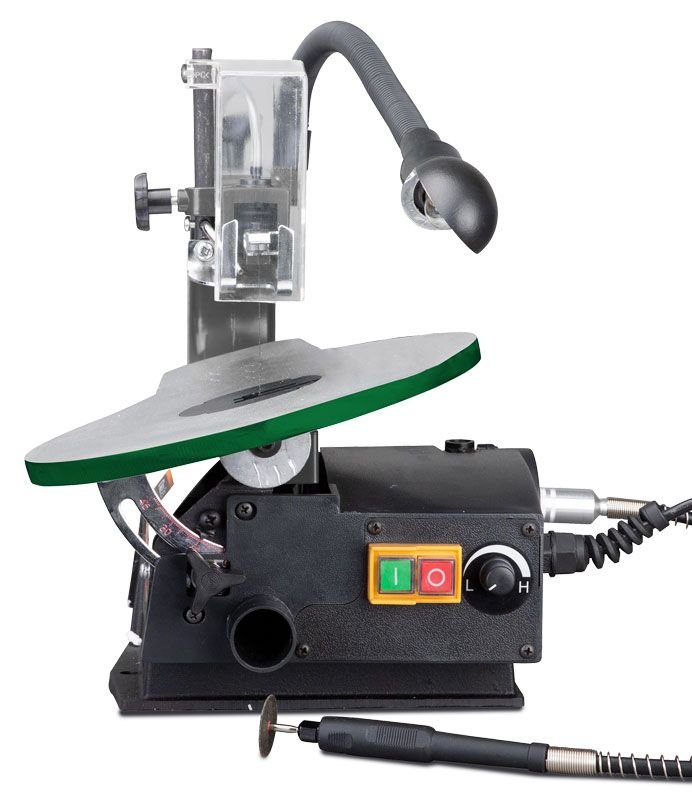 Lupenková pila s plynulou regulací chodu pilového plátku v rozsahu 550 – 1 600 kmitů za minutu. Ideální pro jemnou mechanickou práci, výrobu hraček, modeláře, atd.