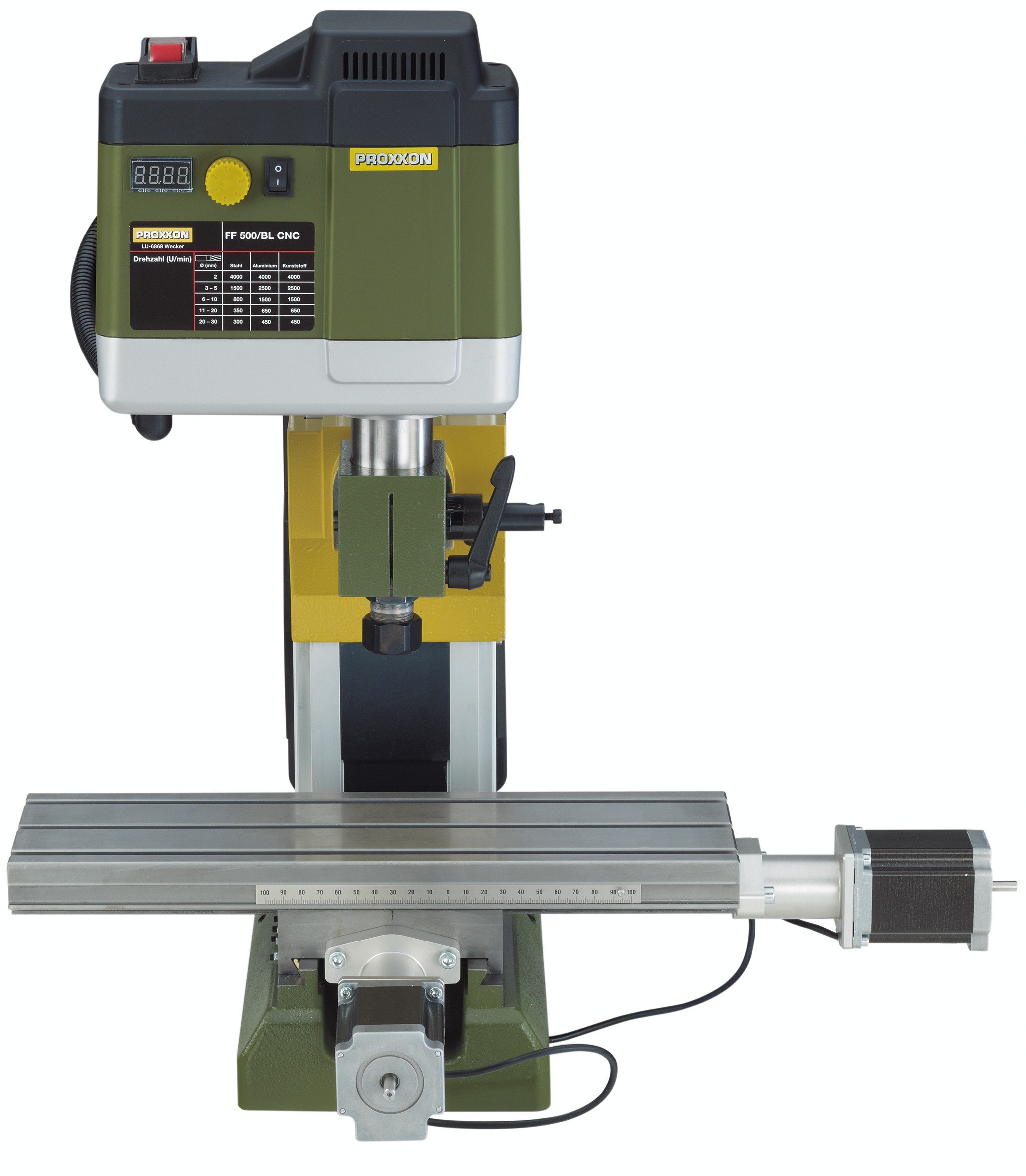 Velká dráha posuvu jednotlivých os, konkrétně "X" cca 290 mm, "Y" cca 100 mm a "Z" cca 200 mm. Elektronická regulace rychlosti otáček 200 - 4.000 ot./min.