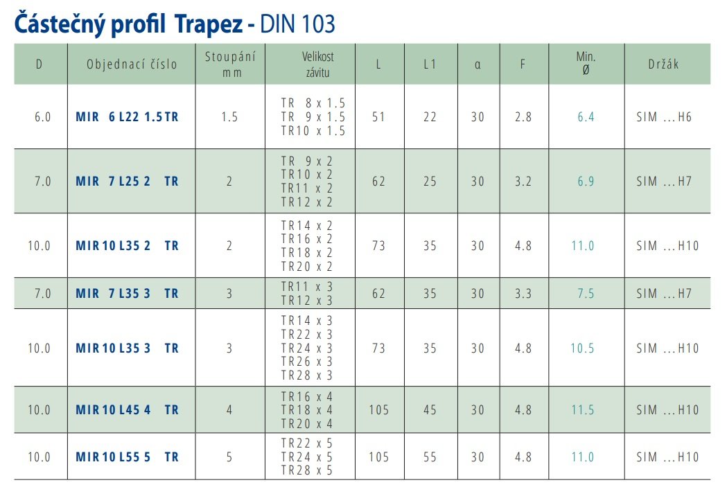 MIL10L353TRK20 nůž MINI zátivovací TRAPÉZOVÝ levý, L35, stoupání TR 3mm