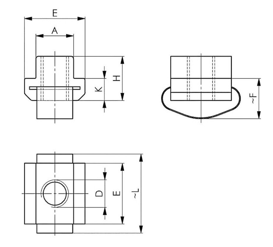 Tato T-matice se pružinou je vyrobena z kalené oceli třídy pevnosti 10 a pružina je z nerezové oceli, což zajišťuje dlouhou životnost a spolehlivost spojení. Pro doporučenou zkušební sílu viz norma DIN 508.