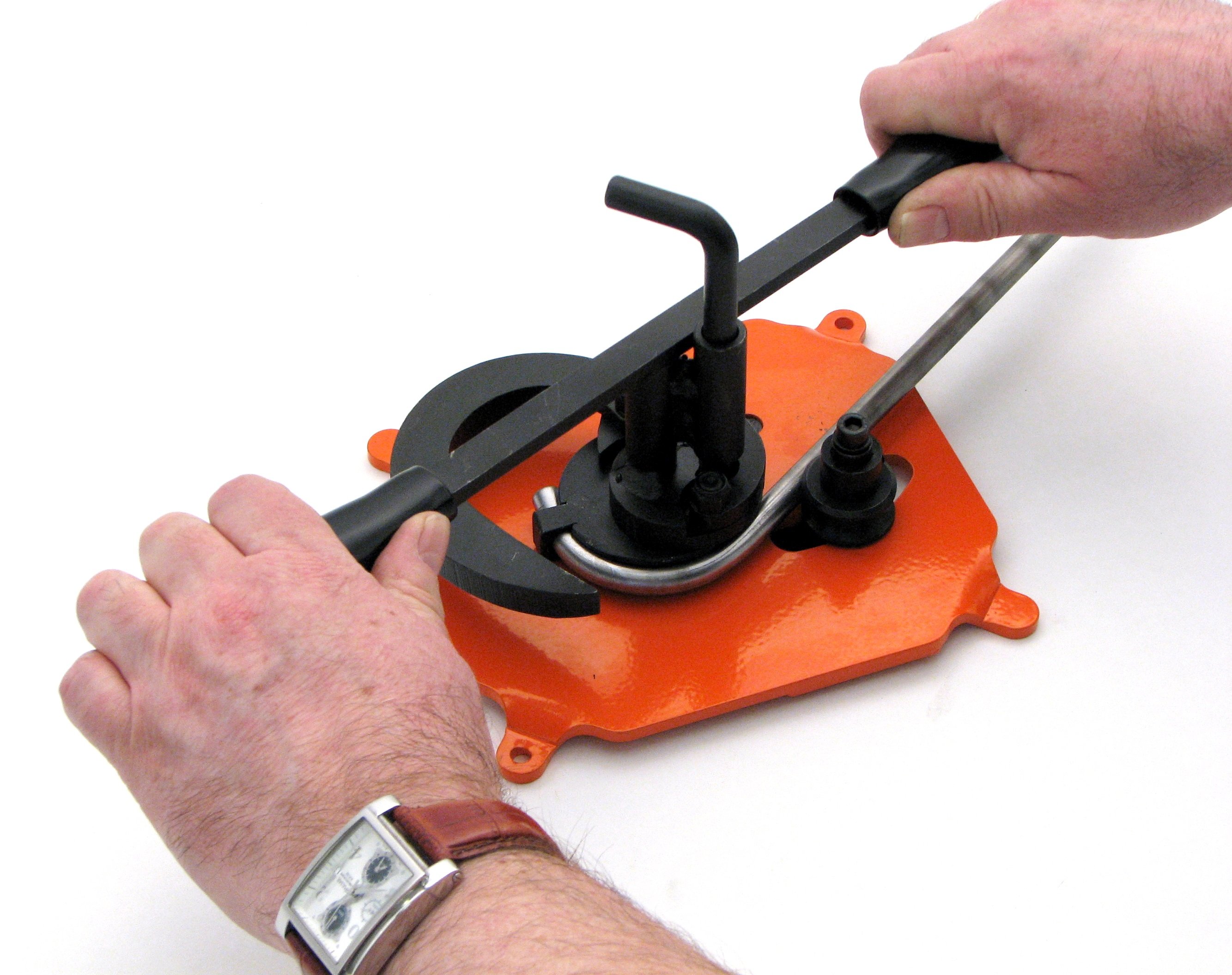 Tento přípravek umožňuje ohýbat trubku až do úhlu 180 stupňů. Úplnou specifikaci viz MC029X spirálová ohýbačka se speciálními komponenty pro ohýbání trubek Mk 2/3.