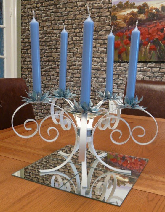 Svícen má elegantní a půvabný design, který vypadá dobře buď jako střed na jídelním stole, nebo použitý venku na stole na terase.