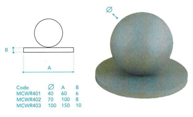 MetalCraft MCWR403 ozdobná koncovka - koule na kulaté základně (velká)