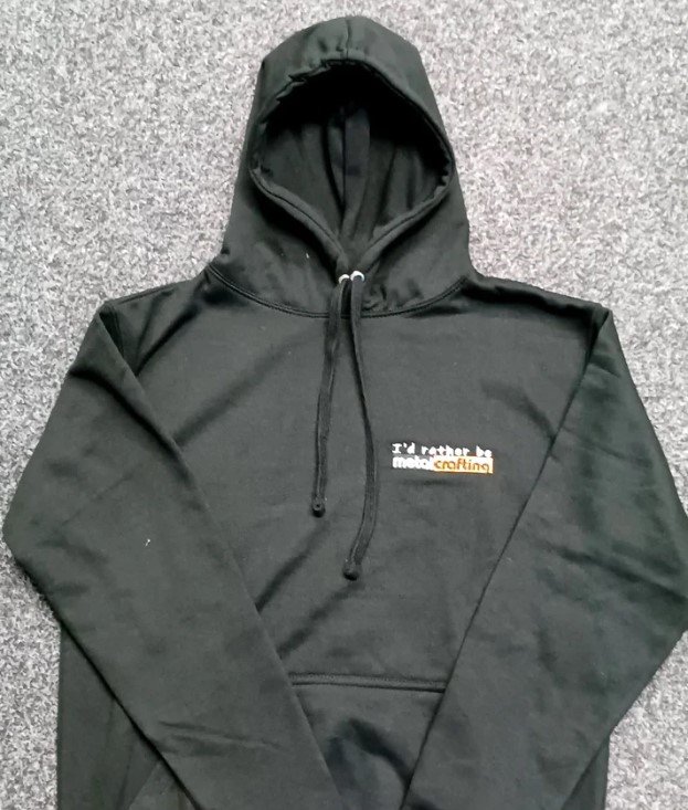 Vysoce kvalitní mikina s kapucí a vyšitým logem „raději bych se věnoval MetalCraftingu “. Skvělé pro všechny nadšence metalcraftu.