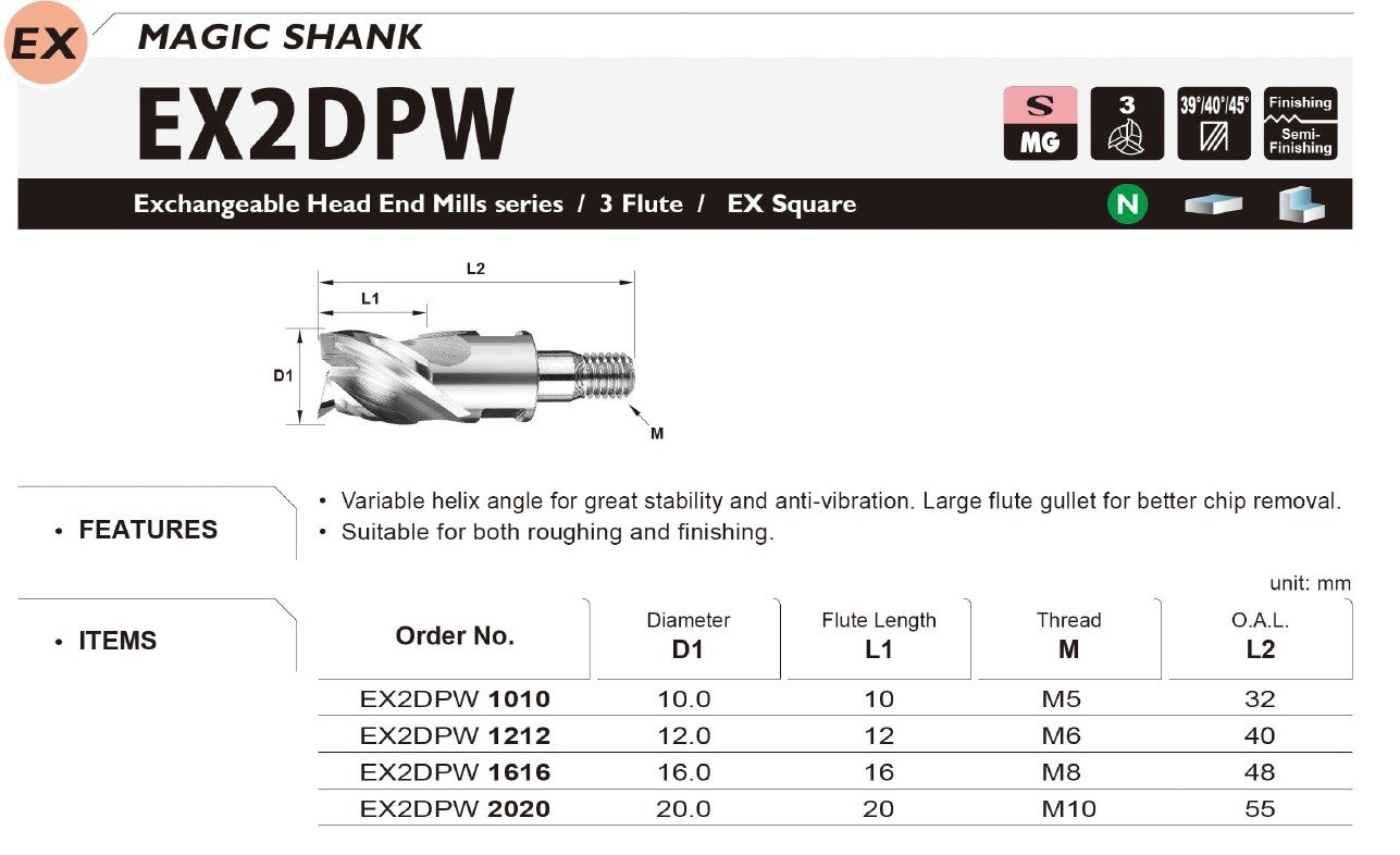 Proměnný úhel šroubovice zajišťuje vysokou stabilitu a účinné potlačení vibrací při obrábění. Velký prostor pro odvod třísek umožňuje efektivnější odstraňování materiálu, což přispívá k vyšší produktivitě a delší životnosti nástroje. Fréza je vhodná jak pro hrubování, tak i pro dokončovací operace.