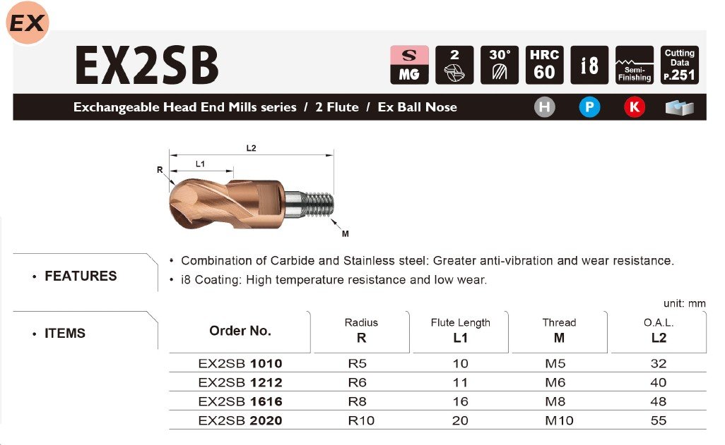 Modulární TK fréza kopírovací 10x10mm / R5 / M5 typ EX2SB1010