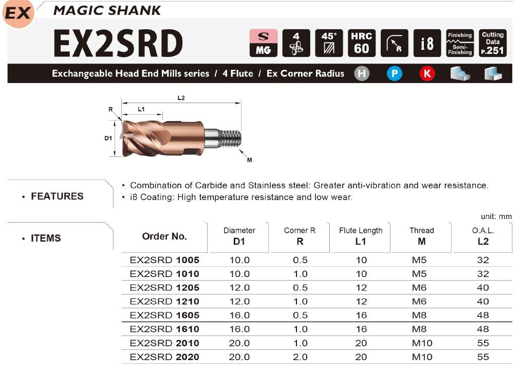 Vzhledem k náročnosti obrábění a tvrdosti obráběného materiálu je pro frézy používán substrát o velikosti zrna 0,5µm s extrémně vysokou odolností vůči lomu a současně vynikající odolností vůči opotřebení.