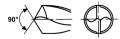 NC navrtáváky 90°, vyrobené z rychlořezné oceli HSS Co5, vhodné na vrtání, pro obrábění ocelí, nerezových ocelí, litiny a slitin chromu.