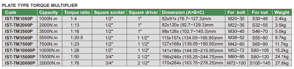 Násobiče kroutícího momentu slouží k montáži a demontáži šroubových spojů velkých průměrů. Použití např. u šroubů kol nákladních automobilů, autobusů, stavebních a zemědělských strojů. Díky planetovému převodu je výstupní kroutící moment větší než na vstupu. (Např. 1:64 je výstupní kroutící moment 64x větší). Další informace o produktu viz. přiložený katalogový list.