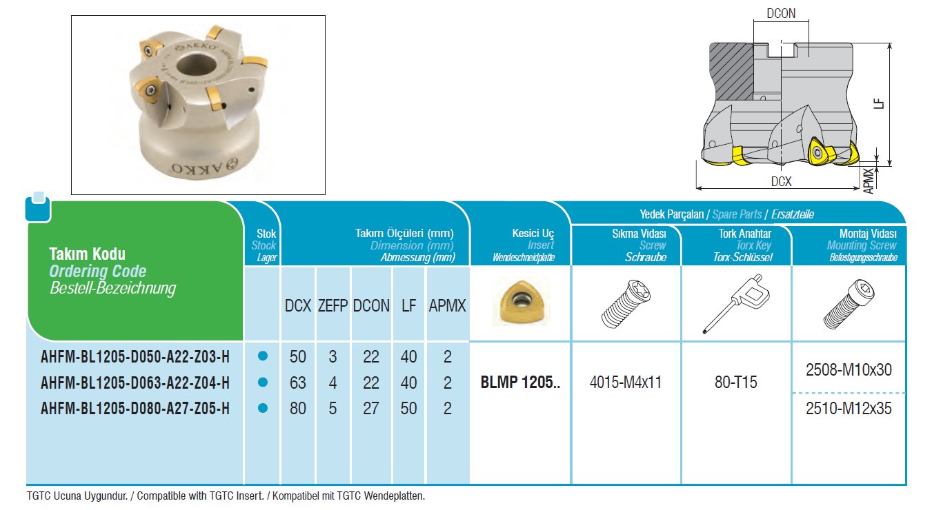 Nástrčná čelní fréza vysokoposuvová AHFM-BL1205-D063-A22-Z04-H