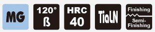 Nástroj je vyroben z jemnozrnného karbidu MG (zrnitost 0,6 μm) a opatřen povlakem TiAlN s teplotní odolností až 800 °C, což zaručuje dlouhou životnost i při náročném suchém obrábění.