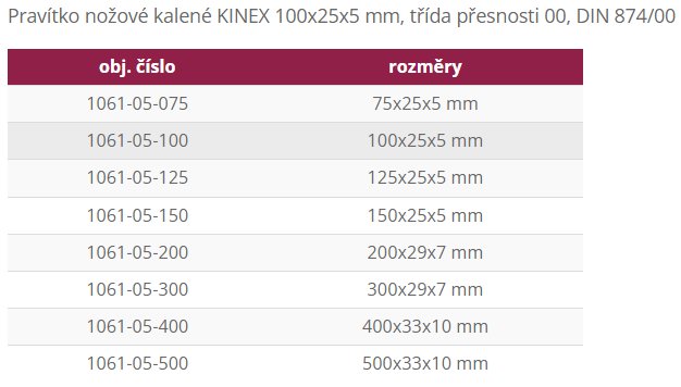 Popis: provedení dle DIN 874 pravítka jsou určena pro kontrolu přímosti a rovnosti povrchu průsvitem světla mezi kontrolovanou plochou a přiloženým pravítkem ostří pravítka je zakaleno a broušeno, funkční plochy jsou lapovány všechna pravítka jsou opatřena tepelně izolační… Více