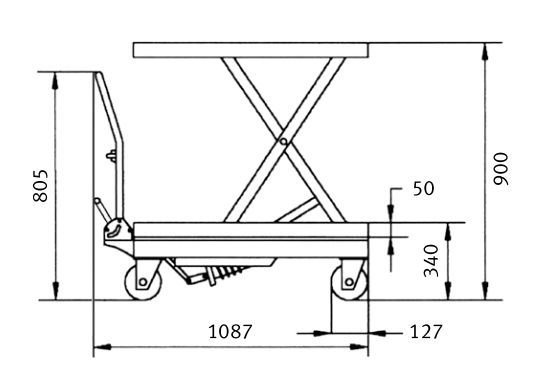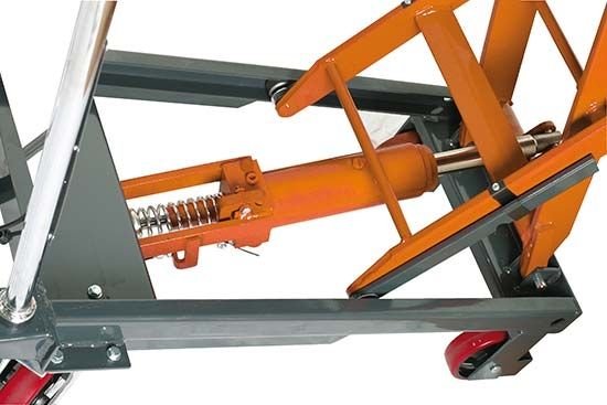 Pojízdný nůžkový zvedací stůl s hydraulickým zvedacím zařízením se zvedací silou 0,5 t.