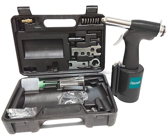 Nýtovačka na stlačený vzduch s funkcí podtlaku pro snadné uchopení nýtu. Určená pro všechny běžně dostupné nýty Ø 2,4 – 4,8 mm.