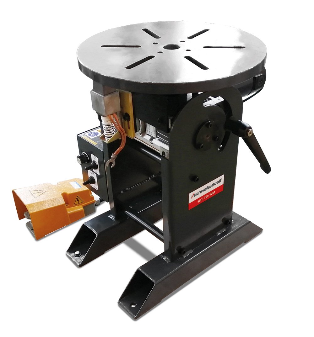 Otočný stůl s ručním nastavením sklonu pracovního stolu a plynulou regulací otáček talíře.