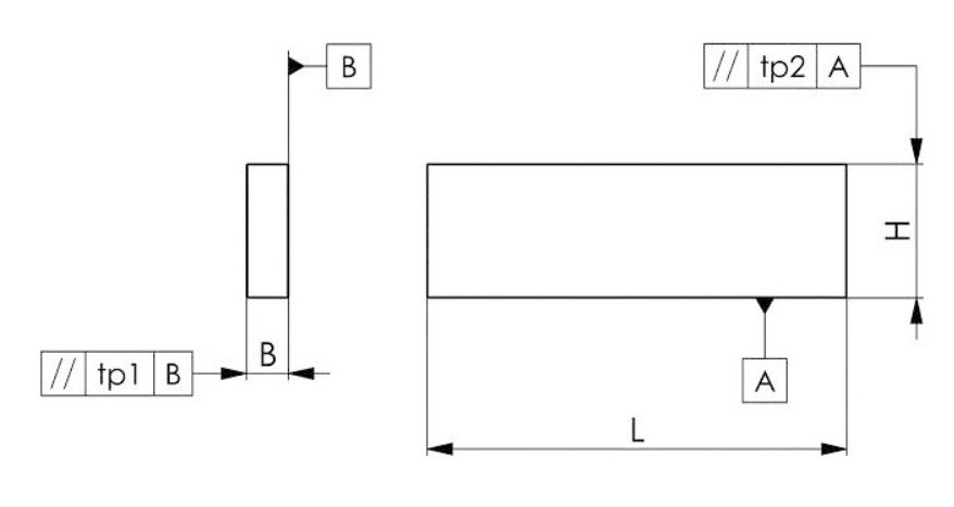 Paralelní podpěry – dodávané po párech, hladké a jemně broušené, povrchově kalené. Tolerance páru ve výšce tp2 a šířce tp1 dle IT 5; dimenzionální tolerance ve výšce a šířce dle DIN ISO 2768m, ostatní rozměry rovněž dle DIN ISO 2768m. Rozměrové údaje uvedeny u produktu.