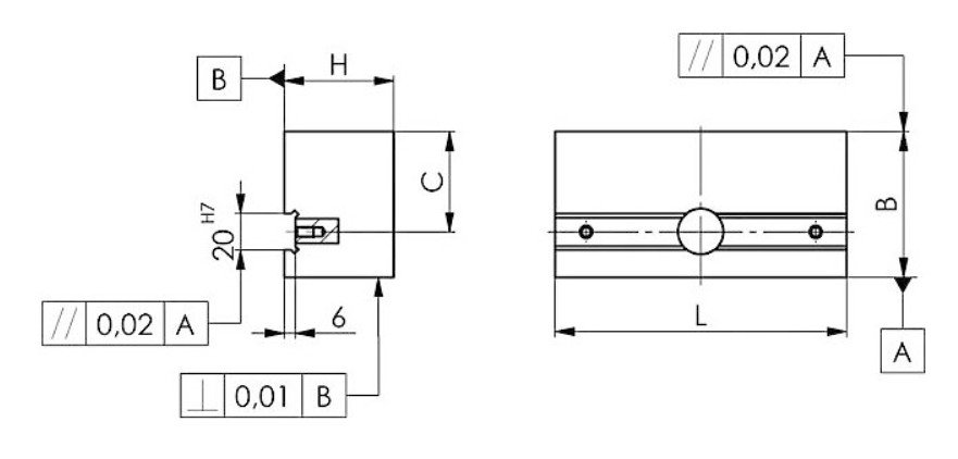 Paralelní doraz, cementovaný a broušený. Paralelita v rozmezí 0,02 mm. Jmenovitá tolerance podle DIN 7168 střední.