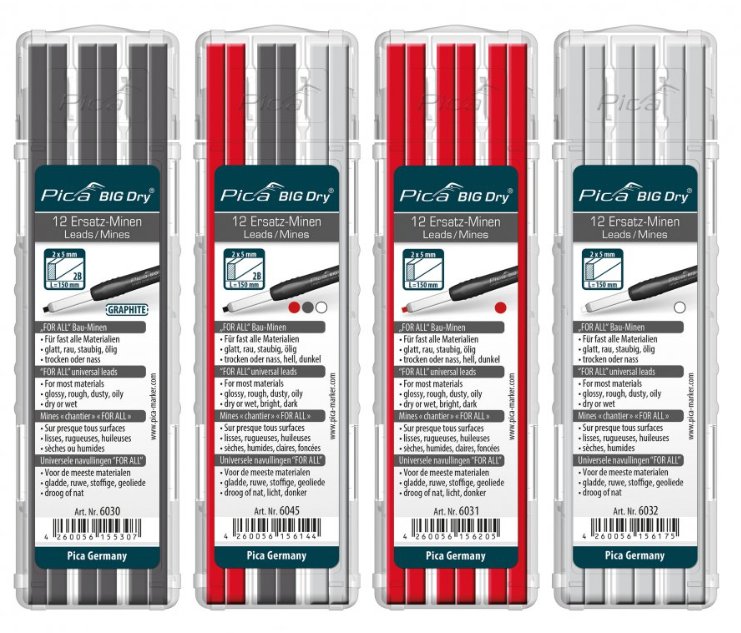 Pica - tuhy na většinu materiálů pro tesařskou tužku ( Barva: šedá + bílá +červená )