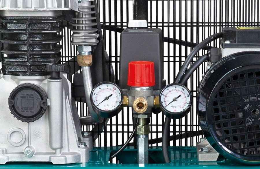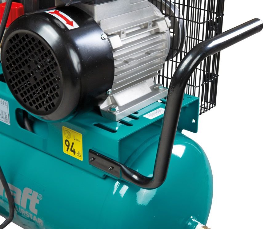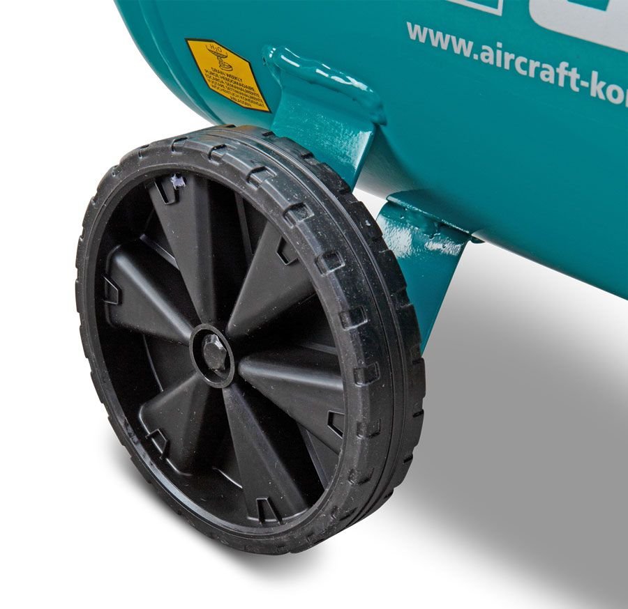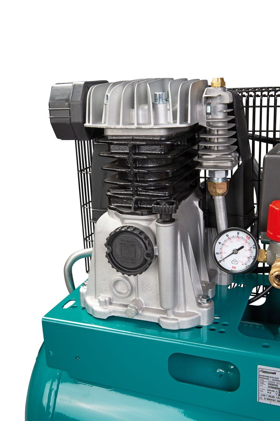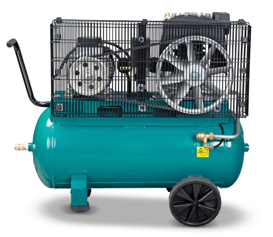 Pojízdný kompresor s osvědčeným pohonem pomocí klínového řemene a dvouválcovým, vysoce výkonnými agregátem z ekonomické řady pro montáž, domácí dílnu a hobby.