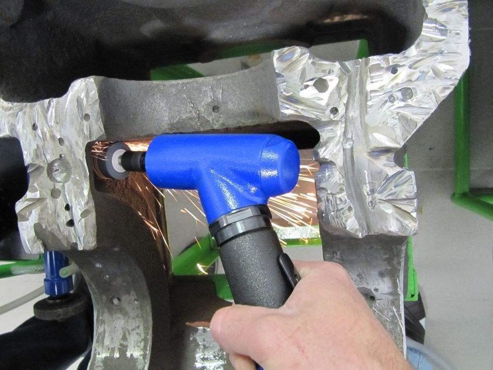 Brusku lze využít i pro obrábění kovů a plastů v obtížně dostupných místech - díky úhlové hlavě (90°).