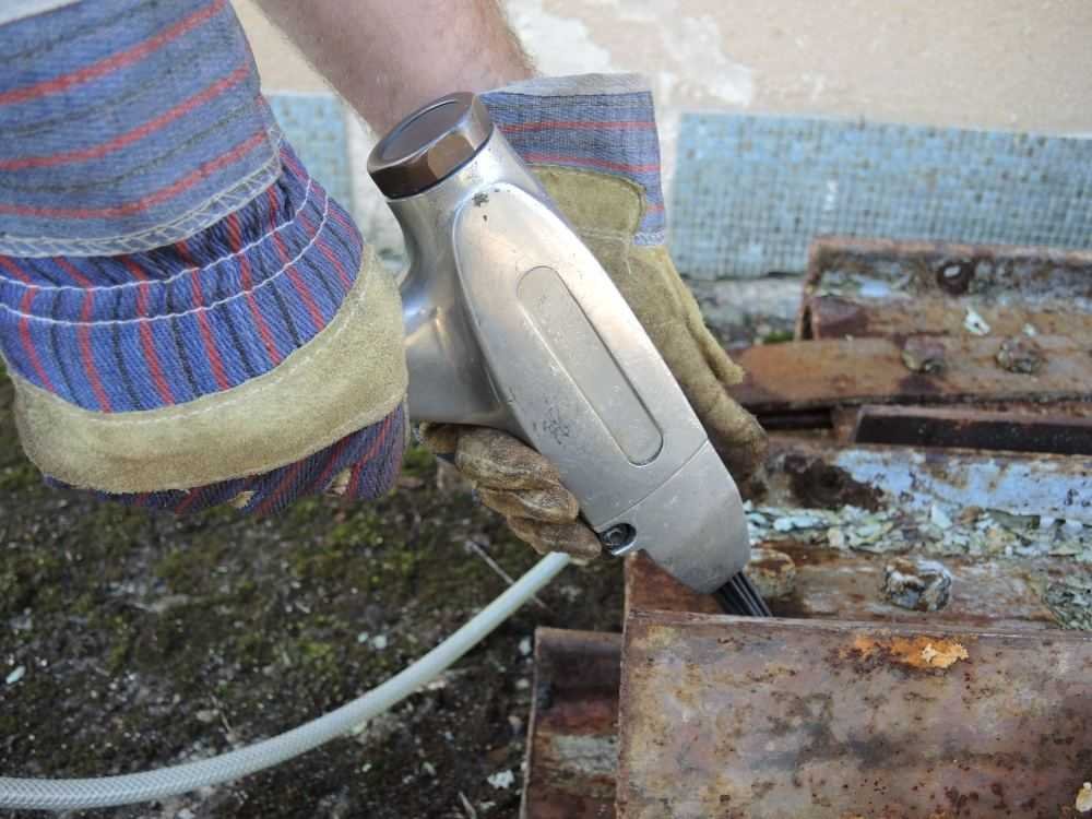 Jehlový oklepávač k odstruskování, odstranění rzi z ocelových konstrukcí a nádrží, odstranění barvy, odstranění kotelního kamene, k apretaci odlitků, k čištění lešení, stavebních strojů od omítek a betonu a pro středně těžké čisticí a odrezovací práce.