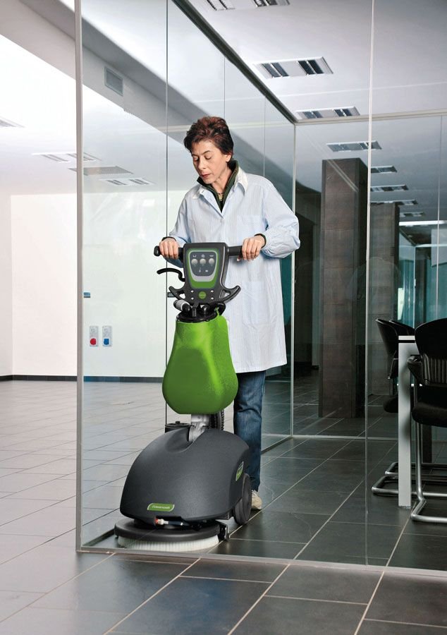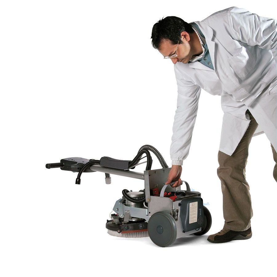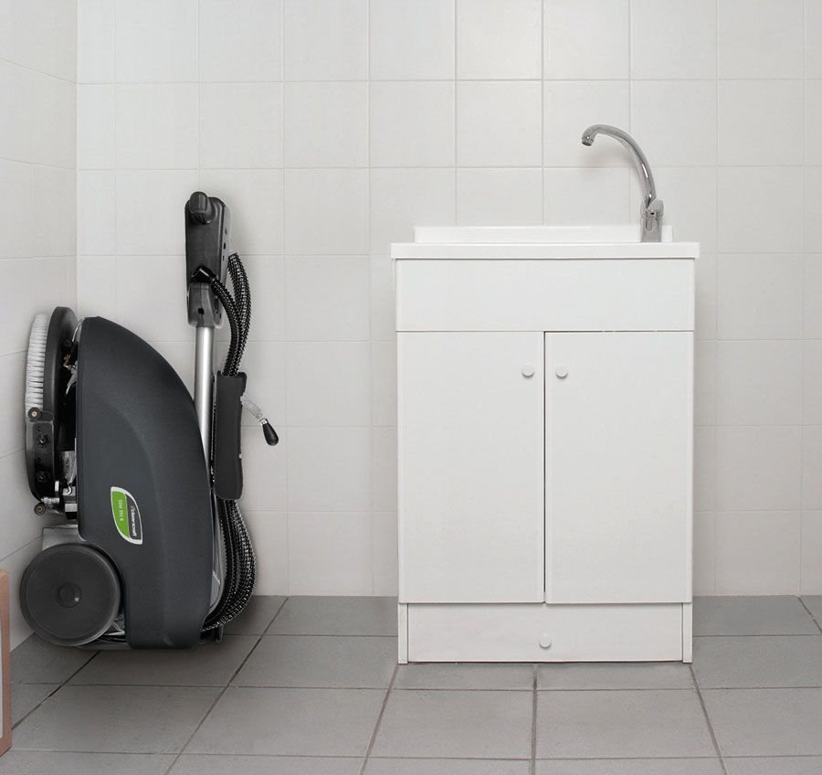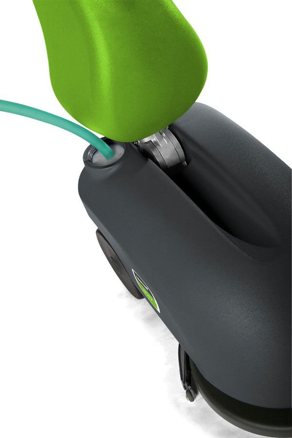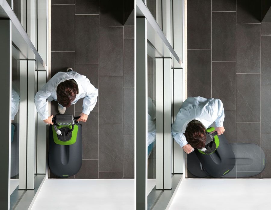 Velmi kompaktní a mimořádně obratný stroj na mytí podlah s odsáváním a pracovní šířkou 35 cm.